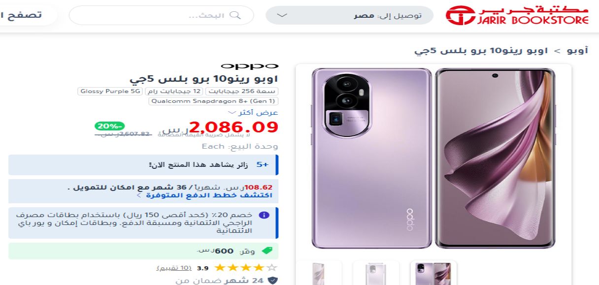 سوف نتعرف على سعر الهاتف الأنيق Oppo Reno 10 Pro Plus بالتقسيط من مكتبة جرير السعودية وهو كما يلي: –